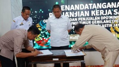 Luwurayapos.com,Sore ini, lobi Kantor Bupati Luwu Timur kembali menjadi saksi penandatanganan perjanjian kerja sama (MoU) operasional dan penjualan DPO minyak goreng antara PT. Luwu Timur Gemilang (Perseroda) dengan CV. Mitra Plastik Jaya (MPJ).Penandatanganan dilakukan oleh Salman Alfarisi Rahman (Direktur CV MPJ) bersama Ikal AS (Direktur…