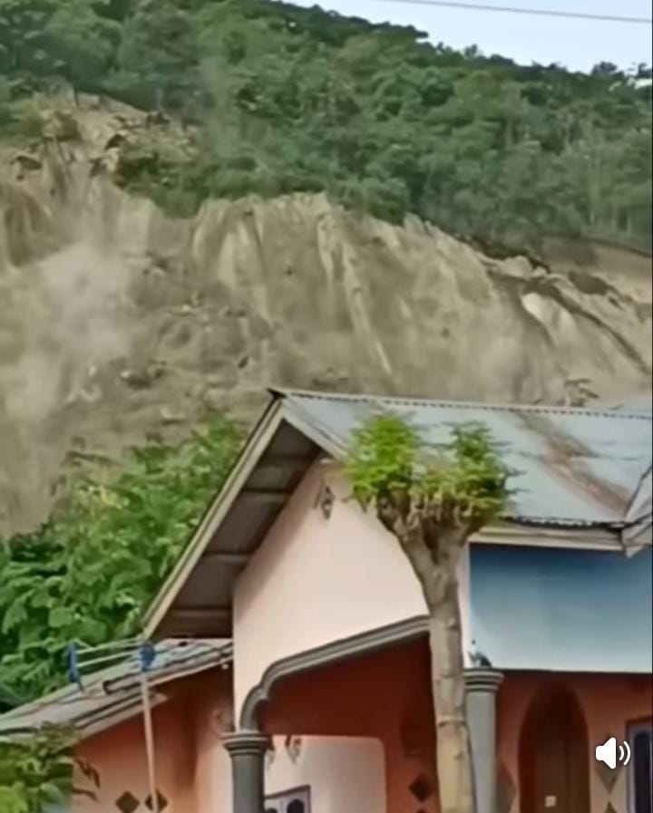 Sebuah video yang diunggah oleh pengguna media sosial, memperlihatkan detik-detik terjadinya longsor tersebut.