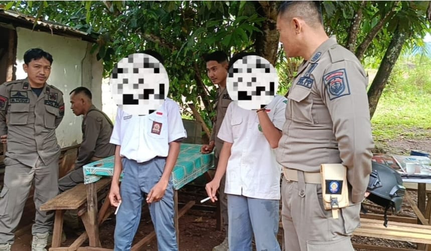 Pada kesempatan ini, Satgas SiPraja mendapati sekelompok siswa yang sedang merokok di luar area sekolah saat jam pelajaran berlangsung.