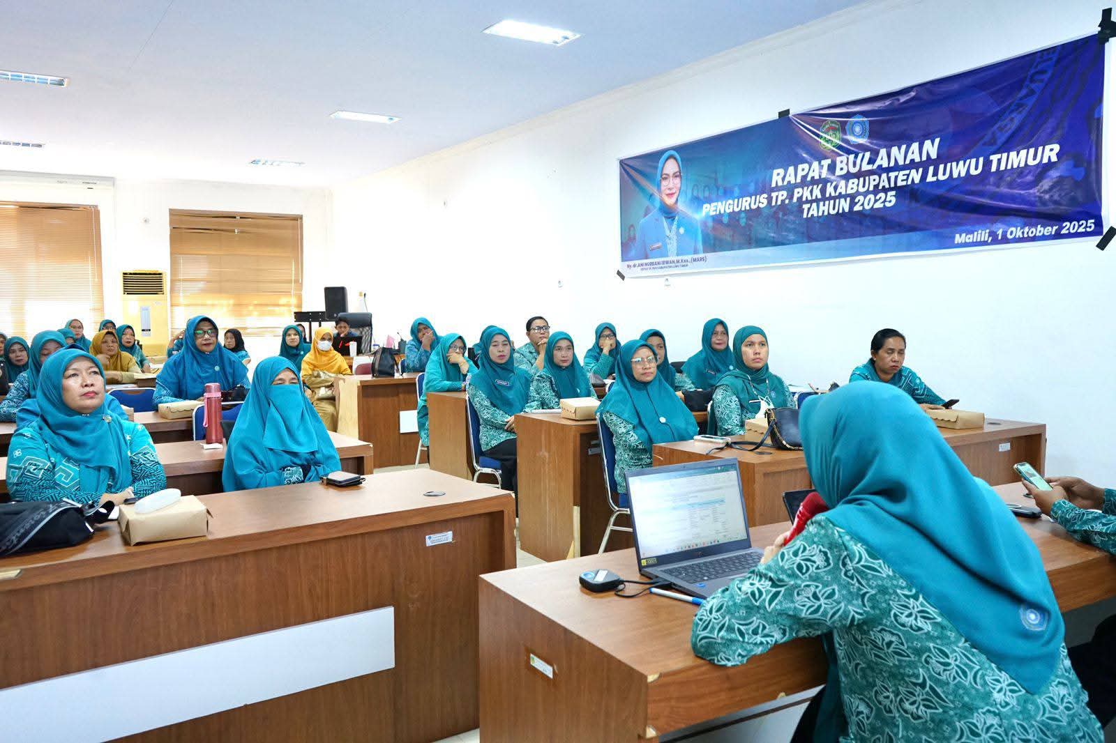 Luwu Timur, Luwurayapos.com – Tim Penggerak PKK Kabupaten Luwu Timur (Lutim) menggelar Rapat Bulanan bersama TP PKK Kecamatan se-Kabupaten Luwu Timur di Aula Media Centre Diskominfo SP, Selasa (30/09/2025).