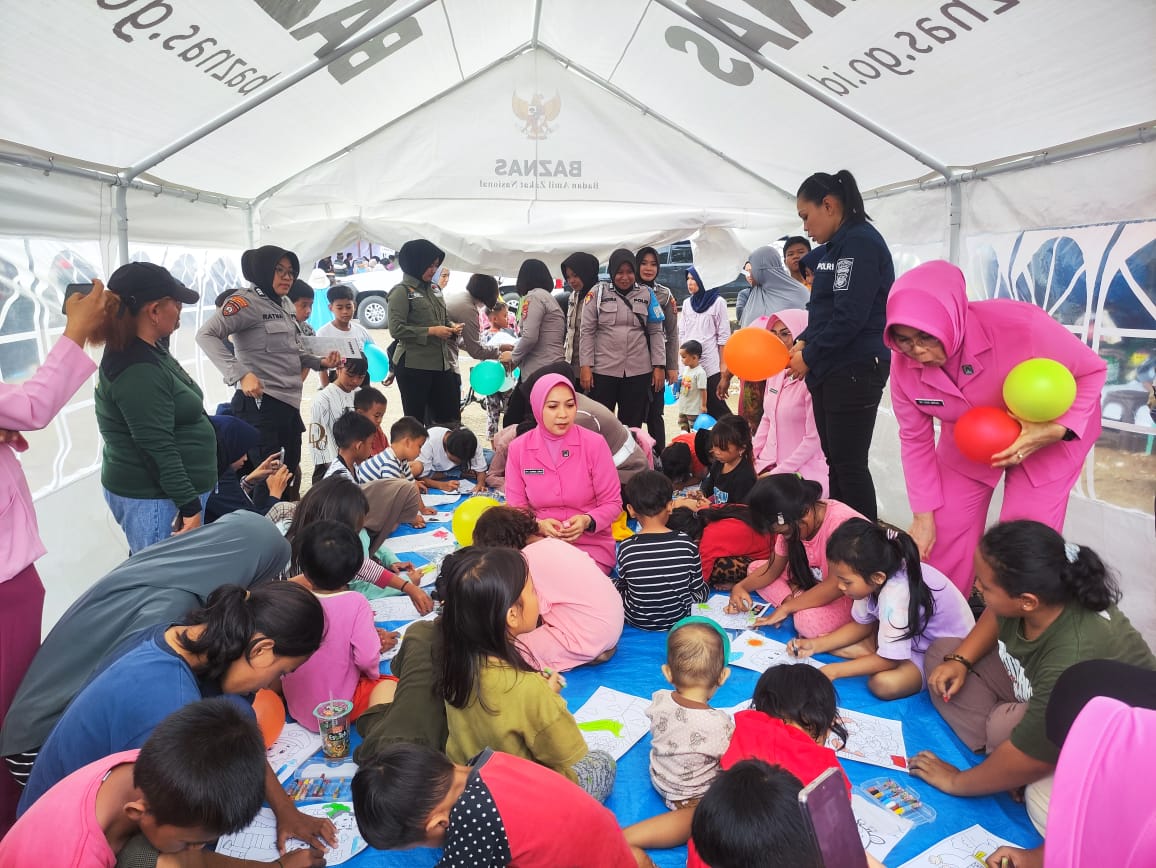 Suasana haru sekaligus hangat terlihat ketika sejumlah Polwan Polres Luwu Timur bersama ibu-ibu Bhayangkari Cabang Luwu Timur bercengkerama dengan anak-anak. Mereka mengajak bermain, bercerita, hingga membagikan kertas mewarnai dan puzzle untuk menghibur serta memulihkan semangat para bocah yang sempat panik saat peristiwa kebakaran terjadi.