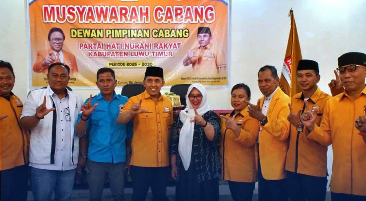 Luwu Timur , Luwurayapos.com – Wakil Bupati Luwu Timur, Hj. Puspawati Husler, menghadiri Pengukuhan Musyawarah Cabang, Dewan Pimpinan Cabang (DPC) Partai Hati Nurani Rakyat (Hanura) Kabupaten Luwu Timur Periode 2026–2030, yang digelar di Aula Hotel Sikumbang, Selasa (06/01/2026).