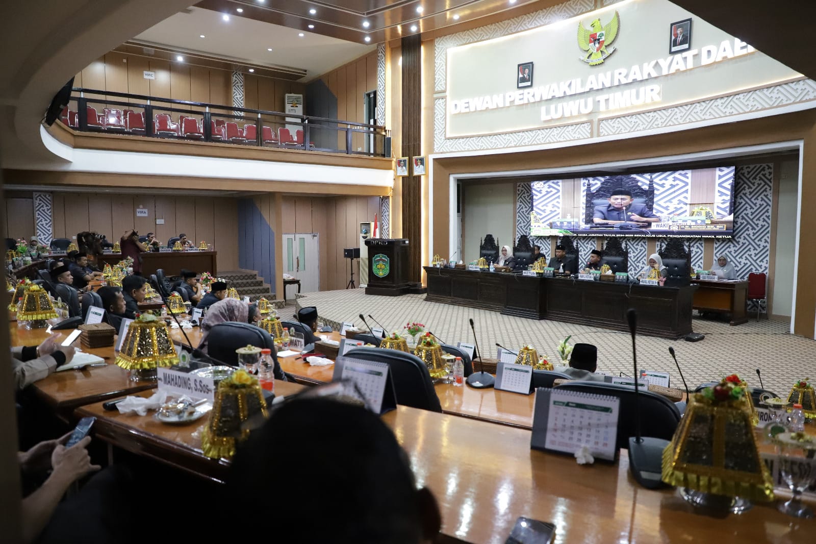 Rapat paripurna dipimpin langsung oleh Ketua DPRD Lutim, Ober Datte, didampingi Wakil Ketua I dan II, HM. Siddiq BM., dan Hj. Harisah Suharjo, serta dihadiri anggota DPRD Lutim, jajaran Pemda Lutim, dan perwakilan unsur Forkopimda Lutim.