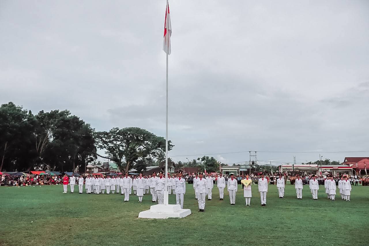 Prosesi pengibaran bendera Merah Putih oleh Pasukan Pengibar Bendera Pusaka (Paskibraka) berlangsung tertib dan lancar, diiringi lantunan lagu kebangsaan Indonesia Raya. Suasana penuh nasionalisme terasa ketika Sang Saka Merah Putih berkibar megah di langit Kecamatan Mangkutana Kabupaten Luwu Timur